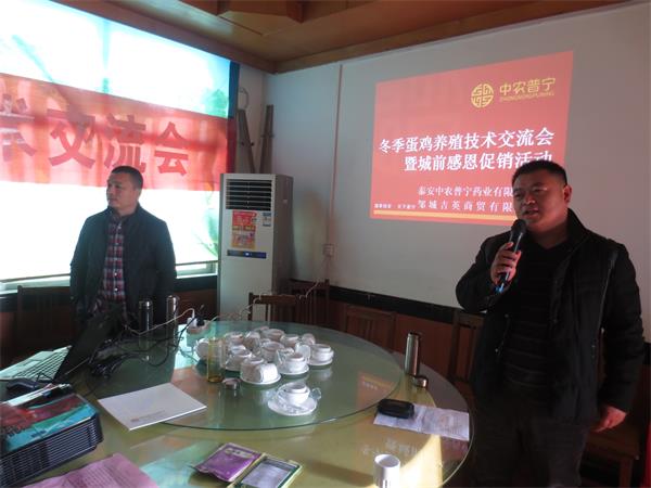 公司營(yíng)銷總監(jiān)劉總、技術(shù)總監(jiān)王總、吉英商貿(mào)劉總等參加了本次活動(dòng)。會(huì)上王總結(jié)合當(dāng)前實(shí)際情況,給廣大養(yǎng)殖戶朋友們講解了一場(chǎng)生動(dòng)、實(shí)用的一堂課;隨后王總對(duì)蛋雞寶產(chǎn)品及公司新開發(fā)的幾個(gè)產(chǎn)品做了重要講解并與大家互動(dòng)交流,特別針對(duì)大家養(yǎng)殖中的難點(diǎn)困惑給予了詳細(xì)解答。會(huì)后大家紛紛表示本次學(xué)習(xí)交流會(huì)受益匪淺。