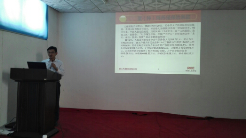 隨后會議由公司技術(shù)服務(wù)部范開見經(jīng)理作了關(guān)于《近期市場疾病流行情況及產(chǎn)品使用說明》的精彩報告。從地方區(qū)域差異、飼養(yǎng)模式不同、飼養(yǎng)品種等方面結(jié)合公司產(chǎn)品特點,進行集中講解。著重強調(diào)了管理重于治療的養(yǎng)殖理念。范經(jīng)理清晰的講課思路以及激情輕松幽默的講課方式,讓大家加深理解了產(chǎn)品。營造了濃厚的學(xué)習(xí)氛圍,提高了大家的產(chǎn)品知識水平,為后續(xù)的產(chǎn)品推廣和市場銷售打下扎實的理論基礎(chǔ)。