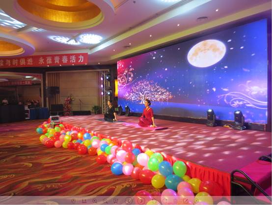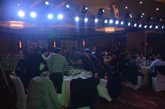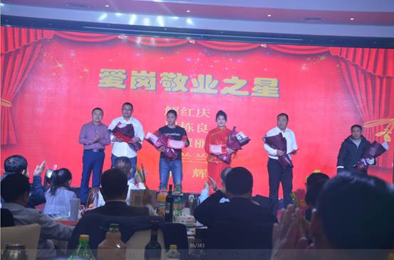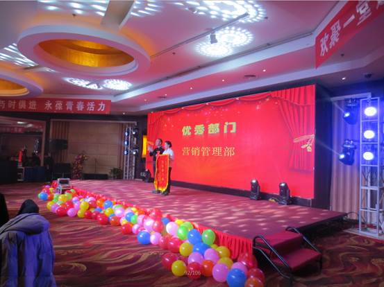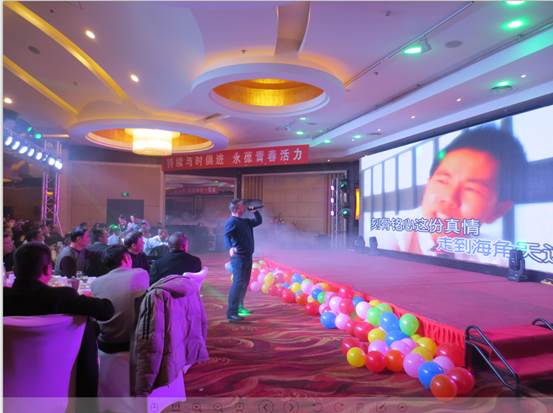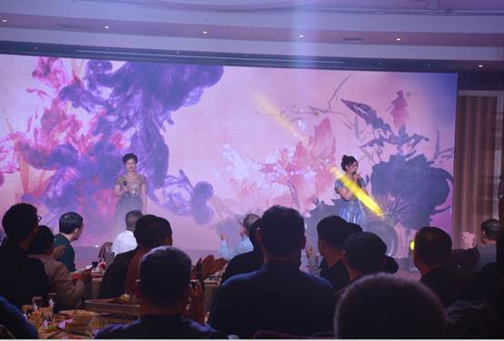 臺下一桌桌豐盛的晚餐、彼此舉杯同賀、相互祝愿。公司領(lǐng)導與員工親情互動、歌聲、掌聲、歡呼聲一直在晚會現(xiàn)場蕩漾。