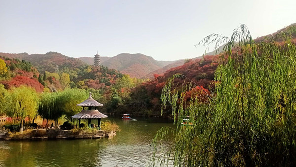 大家觀賞著休閑小島、曲橋和湖岸相連,水榭、觀光平臺(tái)臨水而立,群群天鵝漫游在碧波中,心中的愜意之情油然而生;等大家走進(jìn)紅葉谷深處,植物爭(zhēng)芳斗艷、鳥(niǎo)兒自由飛翔、山水相映成趣,一派生機(jī)盎然的景象映入眼簾;當(dāng)大家攀登高峰后,登高送目、萬(wàn)山紅遍、層林盡染,美不勝收。讓人不由得想起偉人毛澤東的著名詩(shī)句“看萬(wàn)山紅遍, 層林盡染”,一股豪氣涌入心頭。