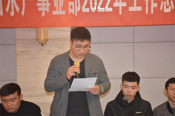 本次會議在一首振奮人心的《眾人劃槳開大船》的合唱中拉開序幕,首先公司營銷總監(jiān)劉瑞祥對2022年水產(chǎn)事業(yè)部的銷售工作作了報告,劉總指出,在2022年受疫情影響的大環(huán)境下,集團水產(chǎn)事業(yè)部仍然取得了歷史最佳的業(yè)績,成績實屬來之不易,這是每個團隊成員拼搏努力的結果!同時劉總對2023年水產(chǎn)事業(yè)部的銷售計劃、工作重點進行了部署,也對團隊每個成員的銷售目標提出了要求。