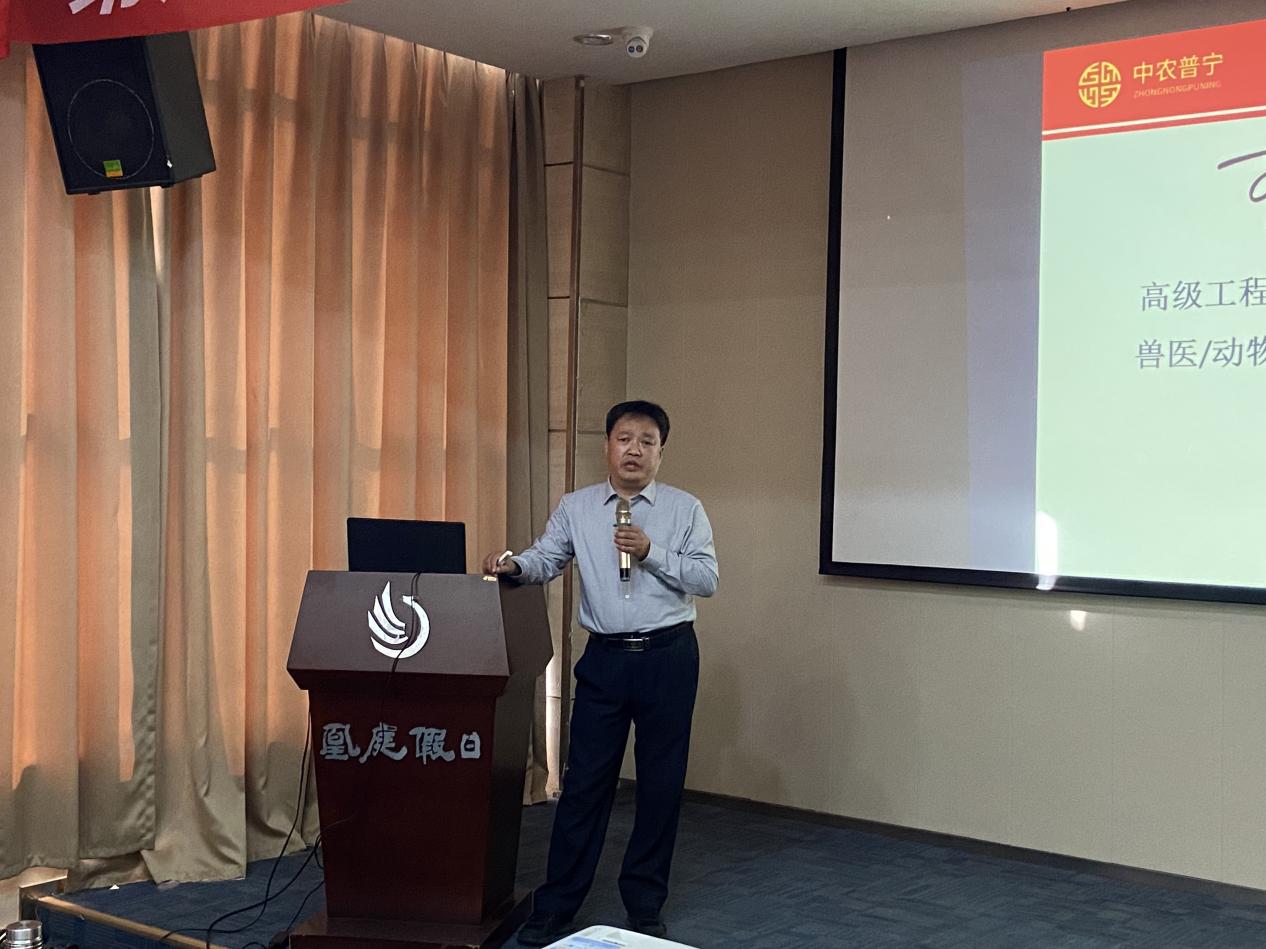 22日上午,會(huì)議開始后,首先由鄭州歐美華動(dòng)物藥業(yè)有限公司總經(jīng)理郭海洋致辭,郭總在致辭中對(duì)中農(nóng)普寧舉辦中獸醫(yī)學(xué)習(xí)交流會(huì)表示感謝,通過參加學(xué)習(xí)交流會(huì),不僅幫助歐美華團(tuán)隊(duì)學(xué)習(xí)了更多中獸醫(yī)知識(shí),提高了自身水平,也更好的讓歐美華團(tuán)隊(duì)走近企業(yè),更好的了解了中農(nóng)普寧。