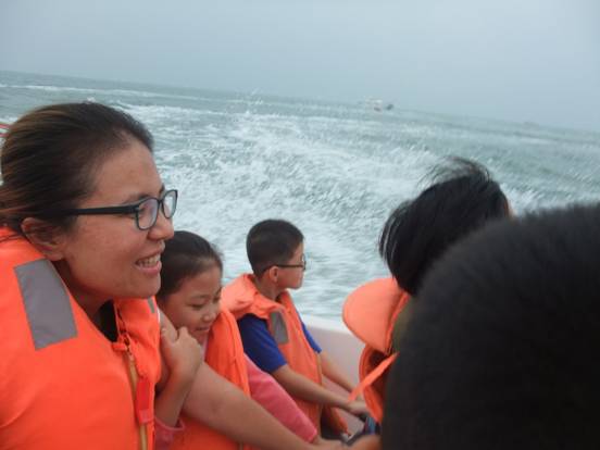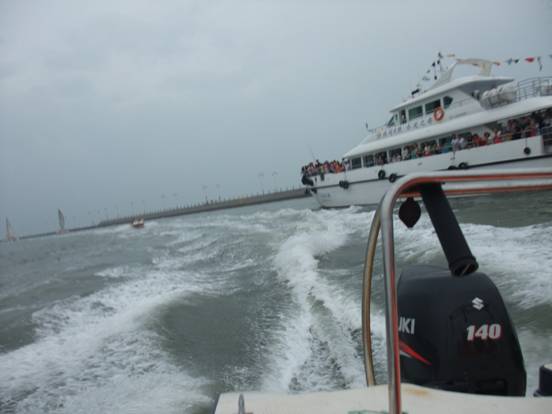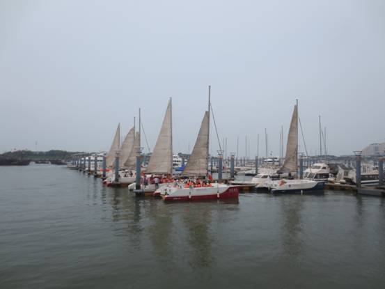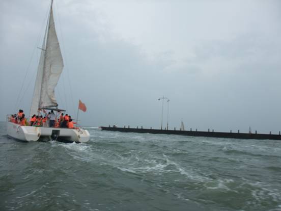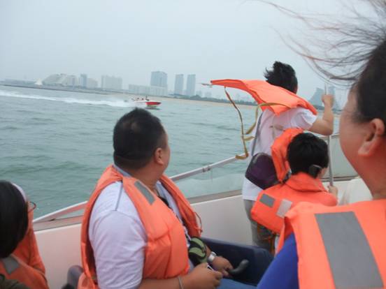 中午12:00多到達了日照,見到了黑黑圓臉導游小劉,小劉安排大家快速用完午餐來到了日照萬平口景區(qū)。在黑黑小劉的一直強說之下,家人乘坐上了游艇、帆船。感受了奧帆基地的風采與刺激,感受到大海寬廣的胸懷與氣魄。
